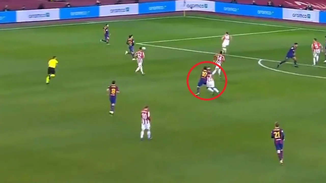 Moments before Bilbao’s momentous triumph was confirmed, Messi threw an arm at Asier Villalibre, who had earlier scored a 90th-minute equaliser in normal time to deny Barca victory.